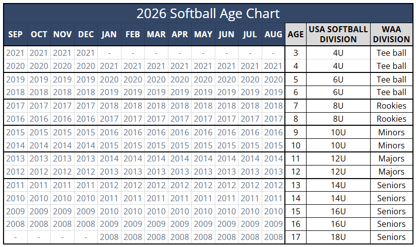 WAA Girls Softball sponsors a girls youth softball program in the Webster, NY community. This recreation softball league is composed of five (5) age group divisions open to youths, age 4 to 17: